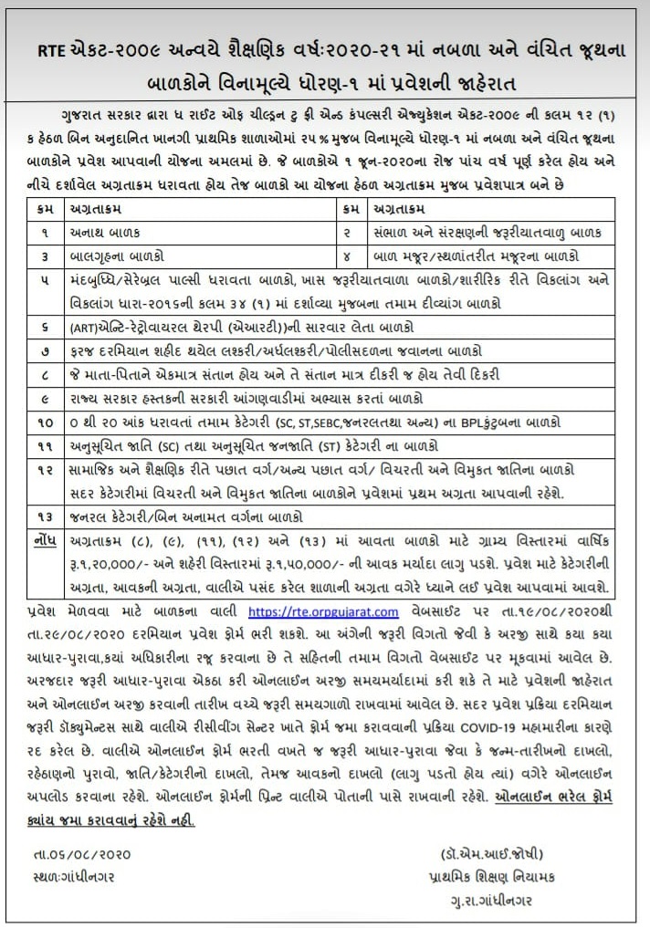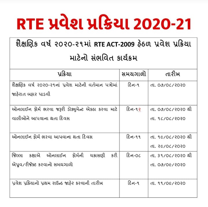 RTE પ્રક્રિયા ૨૦૨૦-૨૧